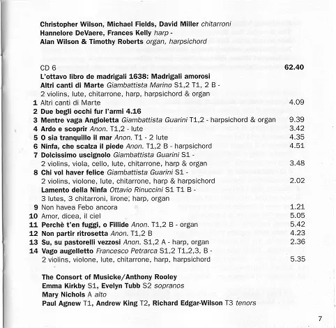 | Művész | Claudio Monteverdi | Anthony Rooley | The Consort Of Musicke |