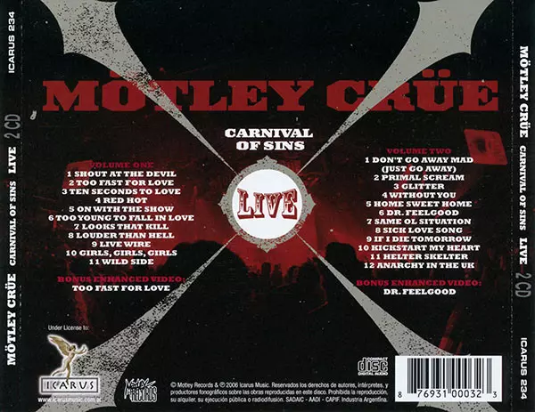 | További információk | Enhanced CD (Argentina • Icarus Music) |