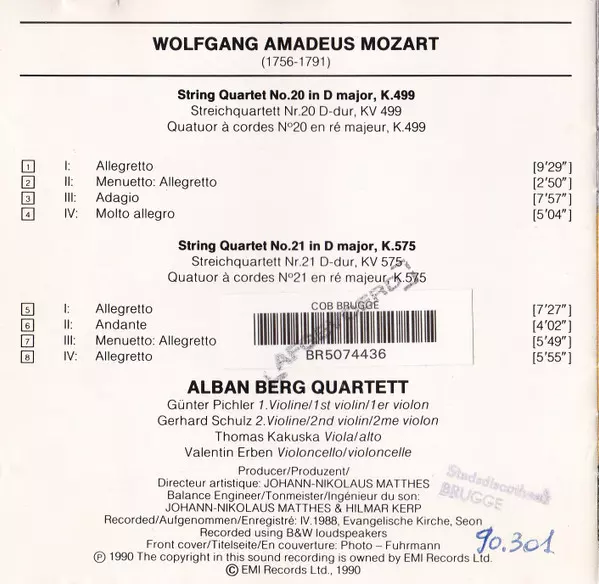 | Cím | String Quartets Nos. 20, K.499 20 & 21, K.575 = Streichquartette = Quatuors À Cordes |