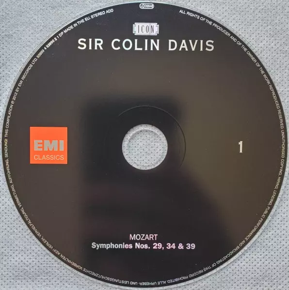 | Művész | Wolfgang Amadeus Mozart | Ludwig van Beethoven | Johannes Brahms | Igor Stravinsky | Felix Mendelssohn-Bartholdy | Hector Berlioz | Sir Colin Davis | Sir Michael Tippett |
