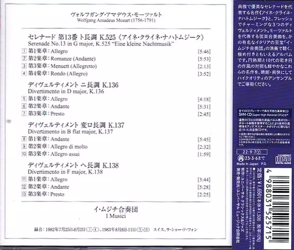 | Cím | Eine Kleine Nachtmusik / Divertimenti K.136-138 |