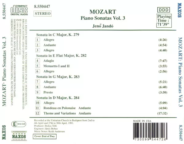 | Művész | Wolfgang Amadeus Mozart | Jenö Jandó |