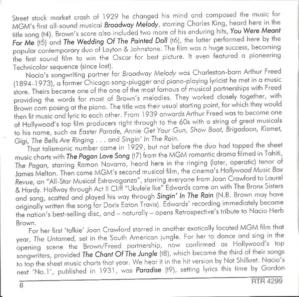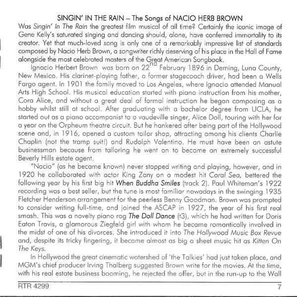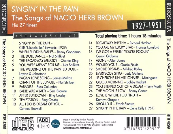 | Cím | Singin' In The Rain - The Songs Of Nacio Herb Brown - His 27 Finest 1927-1951 |