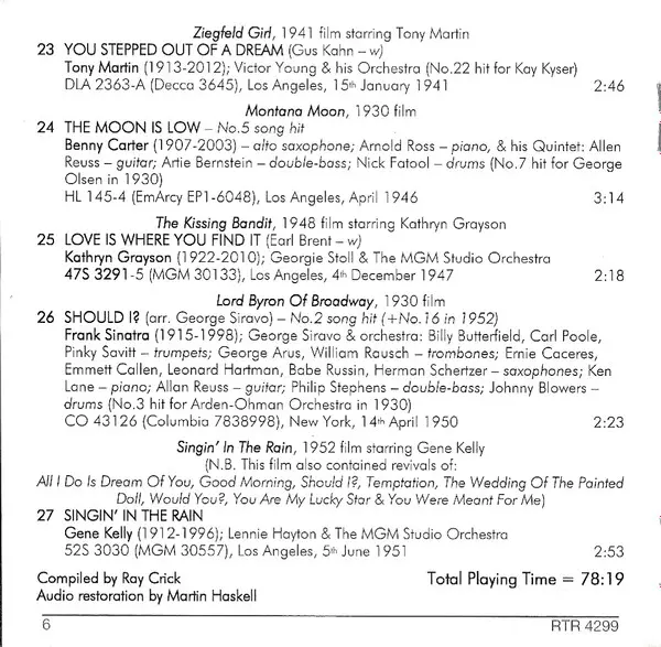 | 5 | Nathaniel Shilkret: You Were Meant For Me | 2:48 min | |