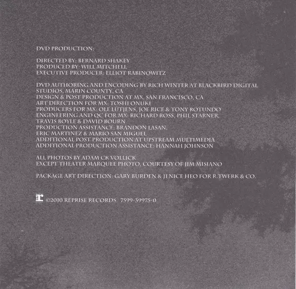 | További információk | DVD (Germany FSK 0) — Europe Reprise Records |