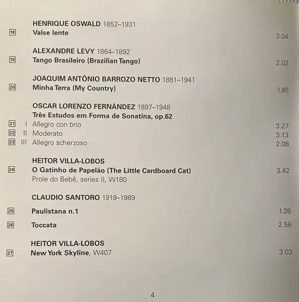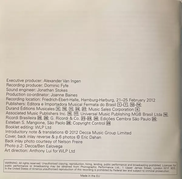 Nelson Freire: Brasileiro Villa-Lobos & Friends A lemezen lévő változat CD - standard kiadás. Ez a különleges kiadás - Európa a kiadó által Decca év 21. augusztus 2012. Album műfajok között Klasszikus zene, Latin zene, Modernizmus, Tango, Etude, Dances, Piano és Late Romantic.