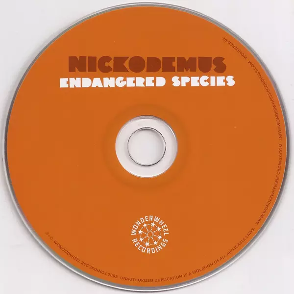 Nickodemus: Endangered Species A lemezen lévő változat CD - standard kiadás. Ez a különleges kiadás - USA a kiadó által Wonderwheel Recordings év 19. május 2016. Album műfajok között Elektronikus zene, Funk / Soul, Hip Hop, Downtempo és Trip Hop.