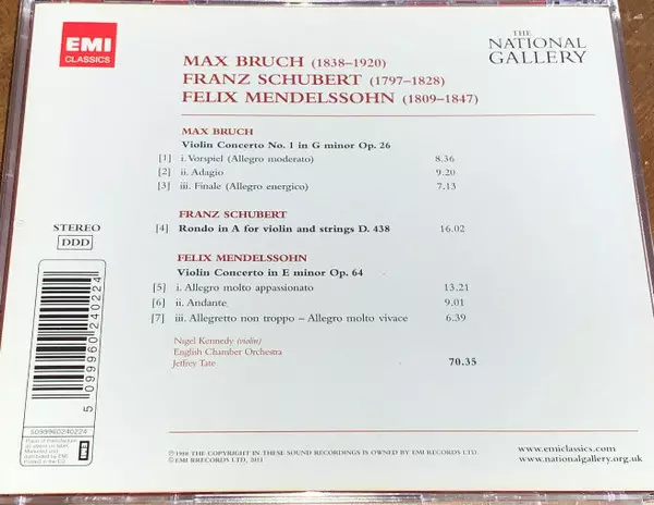 | Művész | Franz Schubert | Felix Mendelssohn-Bartholdy | English Chamber Orchestra | Nigel Kennedy | Max Bruch | Jeffrey Tate |