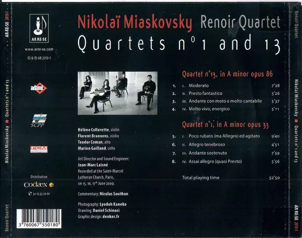 | Művész | Nikolai Myaskovsky | Renoir Quartet |