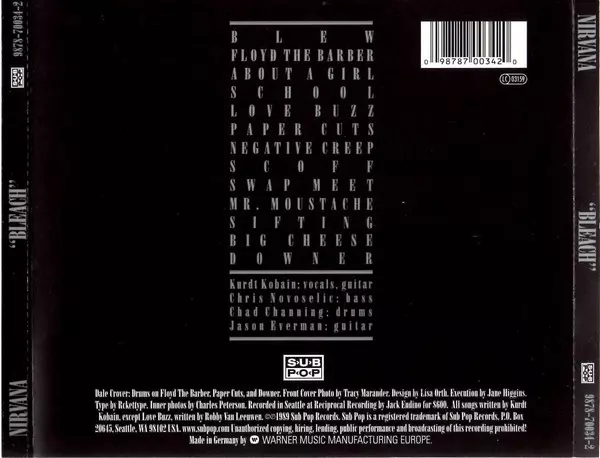 Album "Bleach", které bylo původně nahráno v prosinci 1988 a lednu 1989 během tří sezení s Jackem Endinem v Reciprocal Recording Studios v Seattlu, vyšlo v červnu 1989 a od té doby se bez rozporu a překvapení drží na vrcholu osobního žebříčku nejlepších nahrávek Sub Popu. Album dostalo další impuls ve skluzu s druhým opusem magnum skupiny NIRVANA "Nevermind", který vyšel v roce 1991.