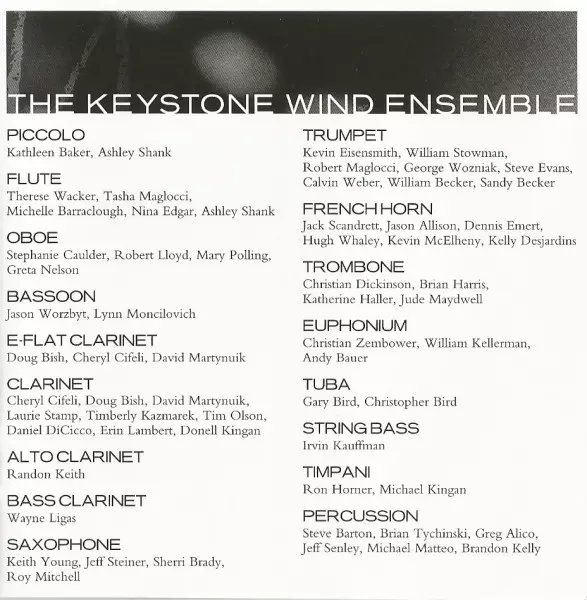 | Művész | Jack Stamp | The Keystone Wind Ensemble | Norman Dello Joio |