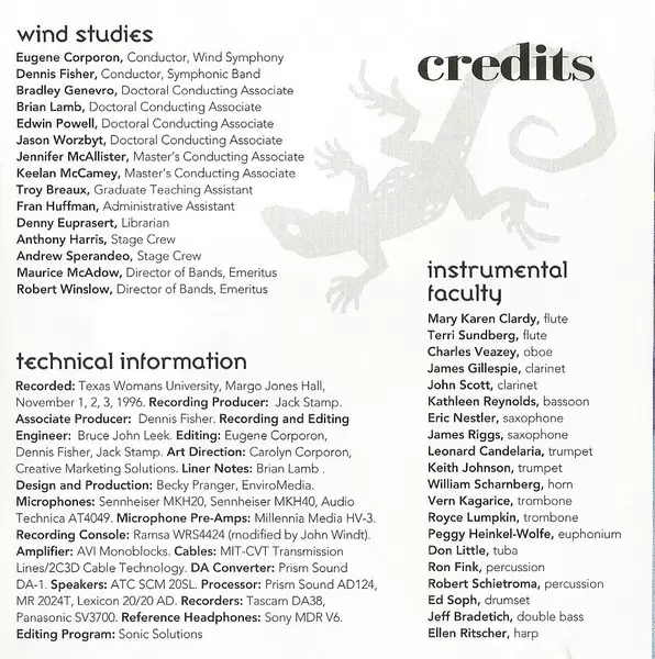 | Művész | Eugene Corporon | North Texas Wind Symphony |