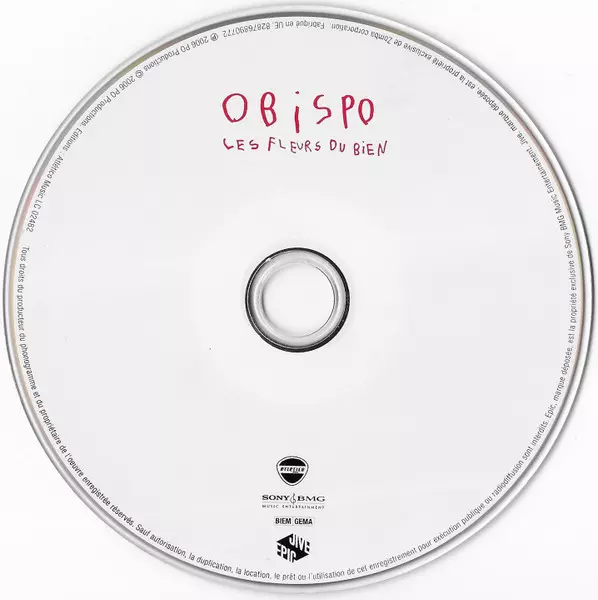 Pascal Obispo: Les Fleurs Du Bien A lemezen lévő változat CD - standard kiadás. Ez a különleges kiadás - Európa a kiadó által Jive/Epic év 10. október 2006. Album műfajok között Pop, Chanson és Europop.