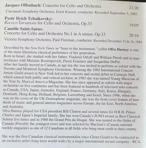 | Művész | Ofra Harnoy |