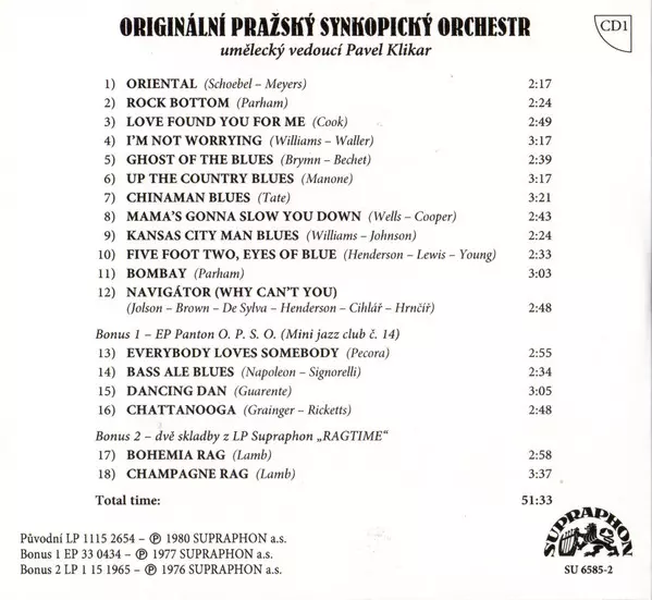 Originální Pražský Synkopický Orchestr: Legendární Gramofonové Snímky Z Let 1976-89 A lemezen lévő változat 4CD/Dobozkészlet - standard kiadás. Ez a különleges kiadás - Cseh Köztársaság a kiadó által Supraphon év 22. november 2019. Album műfajok között Jazz, Big Band, Swing, Ragtime és Csehszlovák klasszikusok.