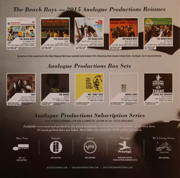 | További információk | Gatefold Remastered Analogue Productions (45 RPM) |