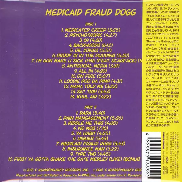 Parliament: Medicaid Fraud Dogg DIGI A lemezen lévő változat 2CD - digisleeve kiadás. Ez a különleges kiadás - Japán a kiadó által P-Vine Records év 21. szeptember 2018. Album műfajok között Funk / Soul és P.Funk.