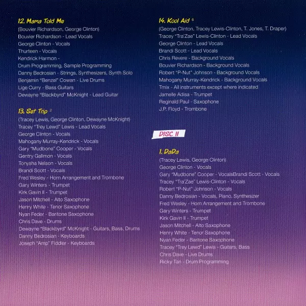 Bass Lige Curry | Clavinet [Clav], Piano, Strings, Electric Piano, Synthesizer, Synthesizer [Synth Bass], Synthesizer [Pads] Danny Bedrosian | Drums Benjamin Cowan | Guitar Blackbyrd McKnight, Trafael Lewis | Guitar, Vocals Garrett Shider | Vocals Bouvier Richardson, Brandi "Nakid" Scott, Clip Payne, Patavian Lewis, Tairee Parks, Tonysha Nelson, Tracey Lewis-Clinton | Written-By Anthony Caruso (2), Brandi "Nakid" Scott, Ebony Houston, Gilberto R Fuentes, LaShonda Clinton, Novena Carmel, Tairee Parks, Tracey Lewis, Tracey Lewis-Clinton | Written-By, Vocals George Clinton