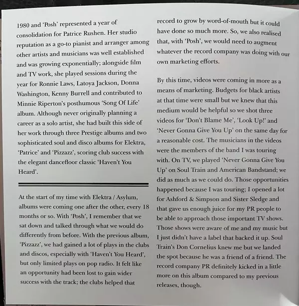 Patrice Rushen: Posh A lemezen lévő változat CD - felújított kiadás. Ez a különleges kiadás - Európa a kiadó által Strut év 3. április 2020. Album műfajok között Funk / Soul, Soul, Funk és Disco.