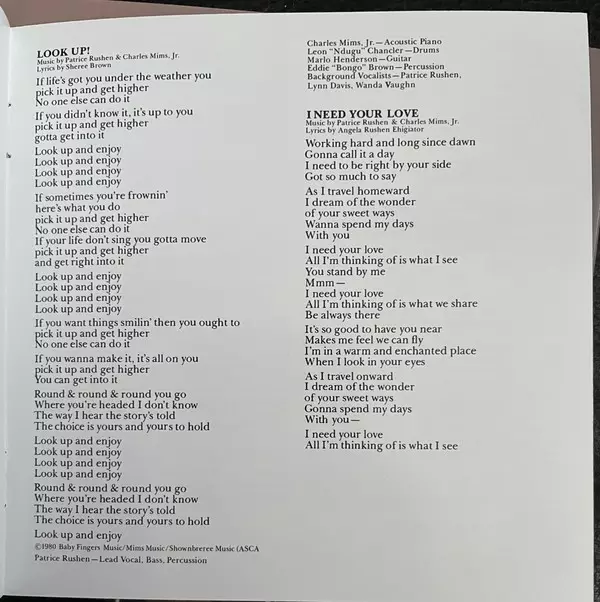 Backing Vocals Lynn Davis, Roy Galloway | Bass Freddie Washington | Drums Melvin Webb | Electric Piano, Piano [Acoustic] Patrice Rushen | Guitar Marlo Henderson, Paul Jackson Jr. | Written-By Angela Ehigiator