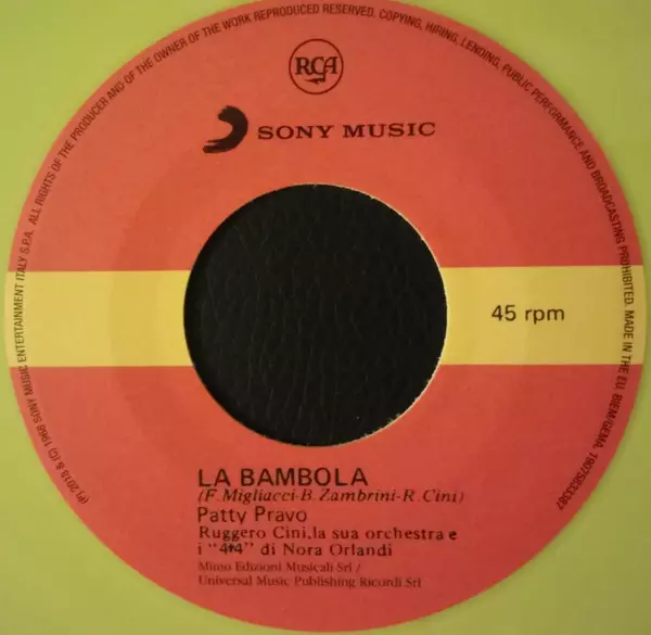 | További információk | Yellow Vinyl 45 RPM Single — Italy (Sony/RCA) |
