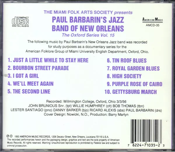 | Művész | Paul Barbarin And His Jazz Band |