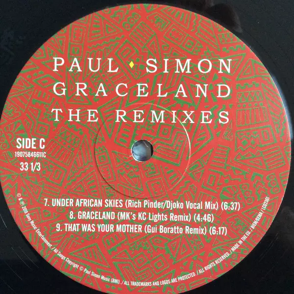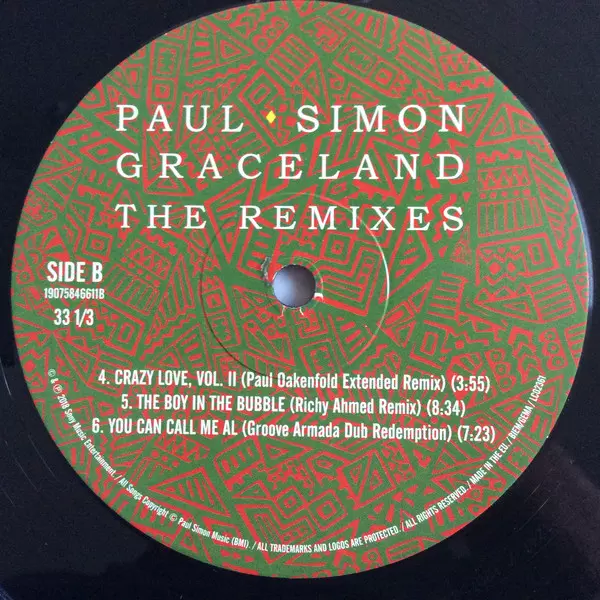 Paul Simon: Graceland (The Remixes) A lemezen lévő változat bakelitlemez 2LP - standard kiadás. Ez a különleges kiadás - Európa a kiadó által Legacy a következőkkel együttműködve Sony Music év 1. június 2018.
