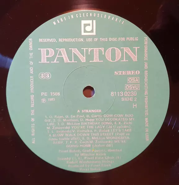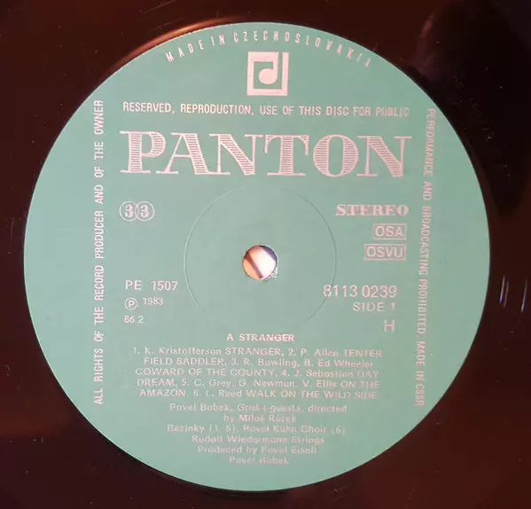 Pavel Bobek: The Stranger A lemezen lévő változat bakelitlemez LP - standard kiadás. Ez a különleges kiadás - Csehszlovákia a kiadó által Panton napján jelent meg 1986. Album műfajok között Folk, World, & Country, Country és Csehszlovák klasszikusok. Green Labels Vinyl.