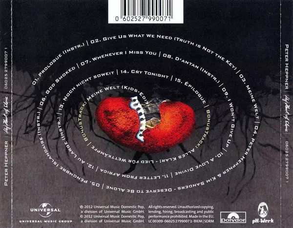 Peter Heppner: My Heart Of Stone A lemezen lévő változat CD - standard kiadás. Ez a különleges kiadás - Németország a kiadó által Polydor év 18. május 2012. Album műfajok között Elektronikus zene és Synth-Pop.