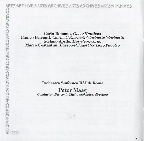 | Bassoon Marco Costantini (2) | Clarinet Franco Ferranti (2) | Horn Stefano Aprile | Oboe Carlo Romano | ||