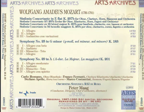 | Művész | Wolfgang Amadeus Mozart | Orchestra Sinfonica Di Roma Della RAI | Peter Maag |