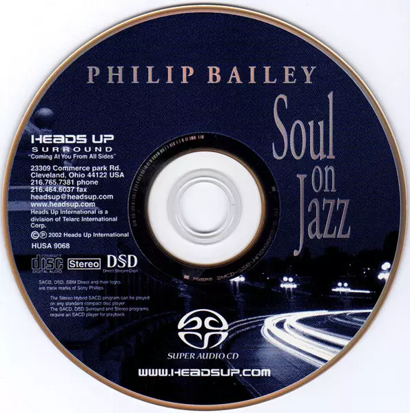 Philip Bailey: Soul On Jazz A lemezen lévő változat SACD - standard kiadás. Ez a különleges kiadás - USA a kiadó által Heads Up International év 23. április 2002. Album műfajok között Jazz és Funk / Soul.