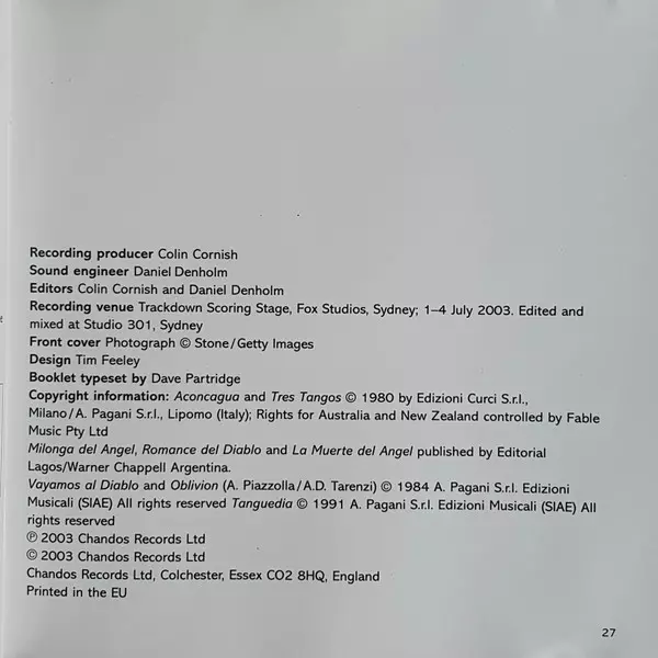 | Művész | Astor Piazzolla | Richard Tognetti | Australian Chamber Orchestra | James Crabb |