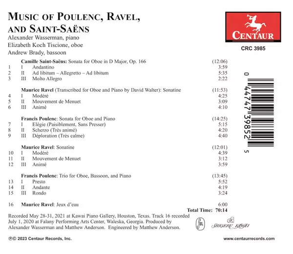 | Művész | Maurice Ravel | Camille Saint-Saëns | Francis Poulenc | Alexander Wasserman | Elizabeth Koch | Andrew Brady |