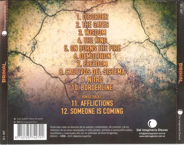 Primal: Primal A lemezen lévő változat CD - standard kiadás. Ez a különleges kiadás - Argentína a kiadó által Del Imaginario Discos év 15. szeptember 2016. Album műfajok között Rock és Heavy Metal.