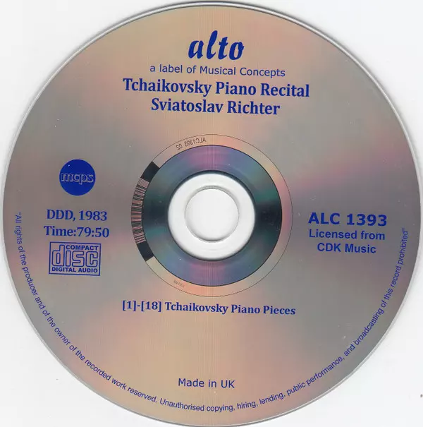 | Művész | Pyotr Ilyich Tchaikovsky | Sviatoslav Richter |