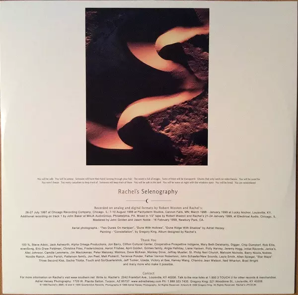 Rachel's: Selenography A lemezen lévő változat bakelitlemez 2LP - standard kiadás. Ez a különleges kiadás - USA a kiadó által Quarterstick Records év 7. június 1999. Album műfajok között Rock, Elektronikus zene, Post Rock és Modern klasszikus.