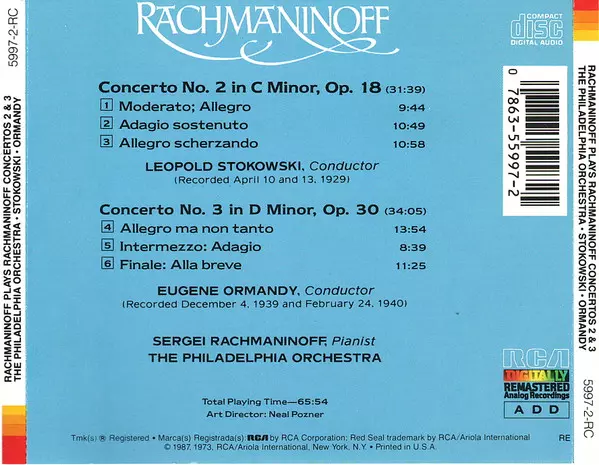 | Művész | Sergei Vasilyevich Rachmaninoff | The Philadelphia Orchestra | Eugene Ormandy | Leopold Stokowski |