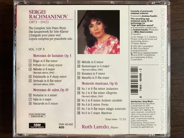 | Művész | Sergei Rachmaninoff | Ruth Laredo |