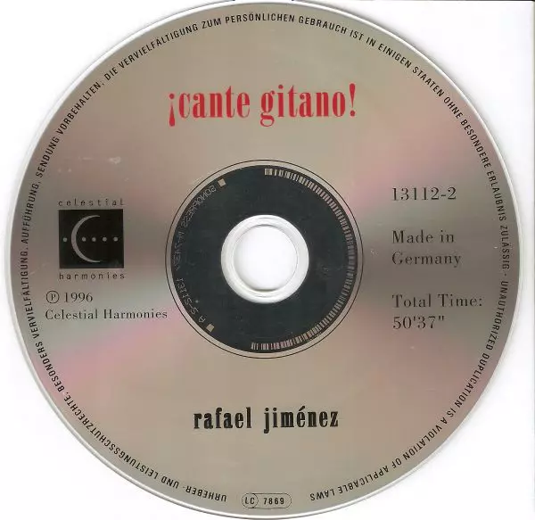 Rafael Jiménez Falo: ¡Cante Gitano! A lemezen lévő változat CD - standard kiadás. Ez a különleges kiadás - USA a kiadó által Celestial Harmonies év 20. július 1998. Album műfajok között Folk, World, & Country és Flamenco.