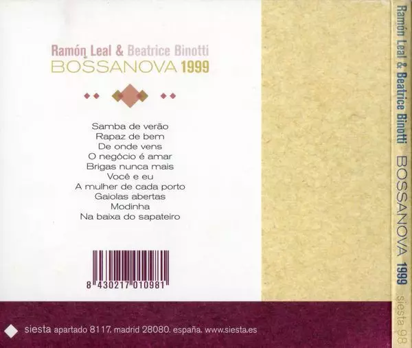 Ramón Leal: Bossanova 1999 A lemezen lévő változat CD - standard kiadás. Ez a különleges kiadás - Spanyolország a kiadó által Siesta napján jelent meg 2013. Album műfajok között Pop, Latin zene és Bossanova.