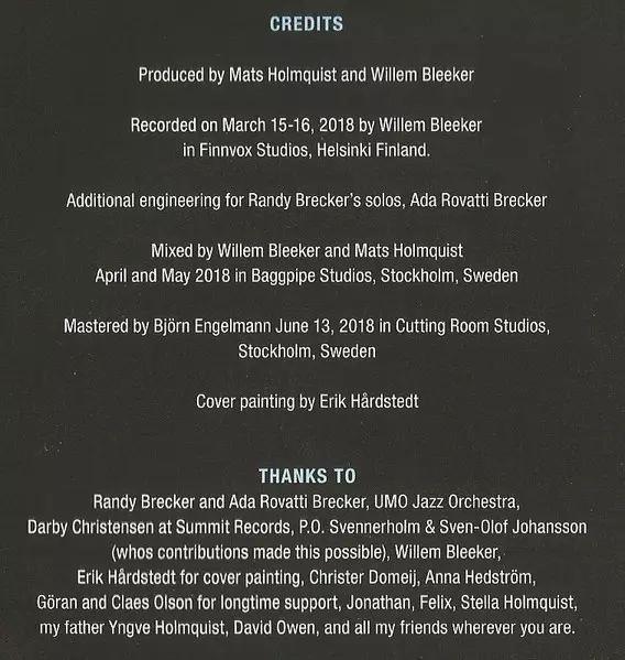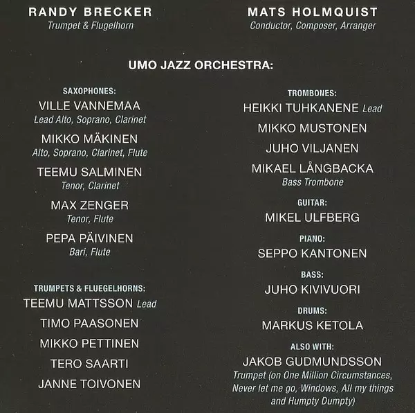 | Művész | Randy Brecker | Umo Jazz Orchestra | Mats Holmquist |