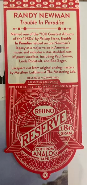 | További információk | 180g Vinyl Rhino Records |