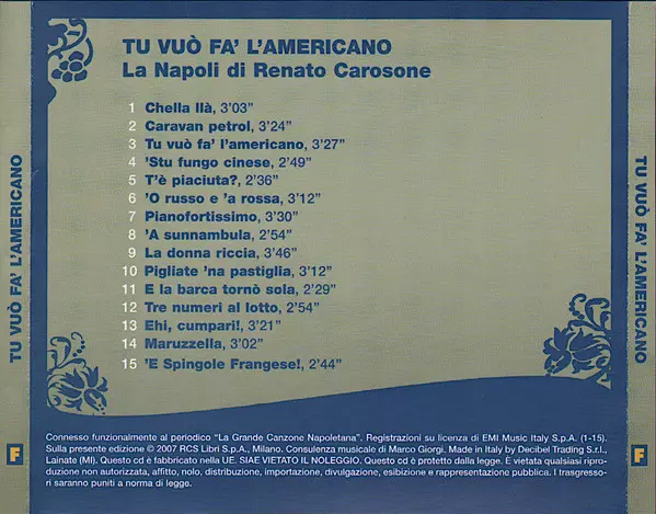 | Cím | Tu Vuò Fa' L'Americano (La Napoli Di Renato Carosone) |