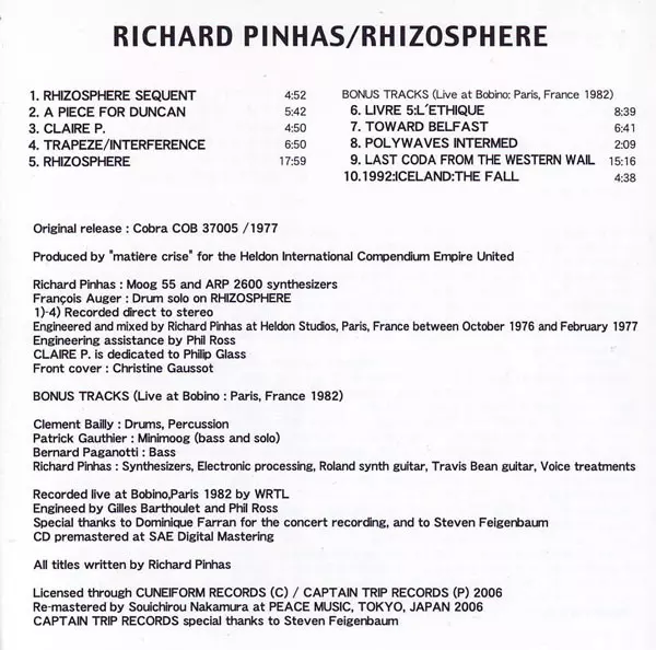 | Művész | Richard Pinhas |