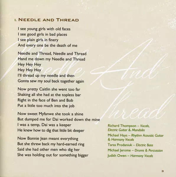 Acoustic Guitar [Rhythm], Harmony Vocals Michael Hays | Drums, Percussion Michael Jerome | Electric Bass Taras Prodaniuk | Harmony Vocals Judith Owen | Vocals, Electric Guitar, Tin Whistle, Mandolin Richard Thompson