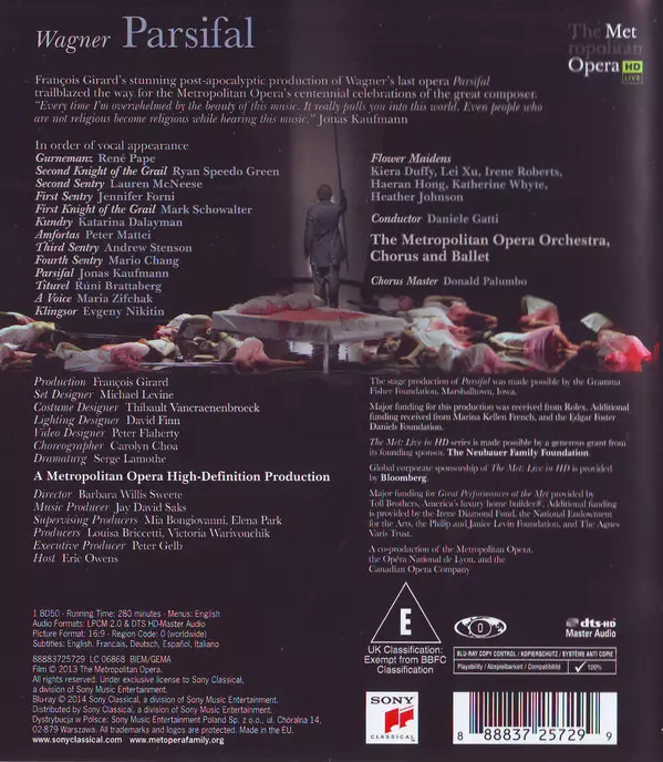 Művész | Richard Wagner | Jonas Kaufmann | Metropolitan Opera Chorus | The Metropolitan Opera House Orchestra | René Pape | Daniele Gatti | Metropolitan Opera Ballet | Peter Mattei | Katarina Dalayman | Evgeny Nikitin |