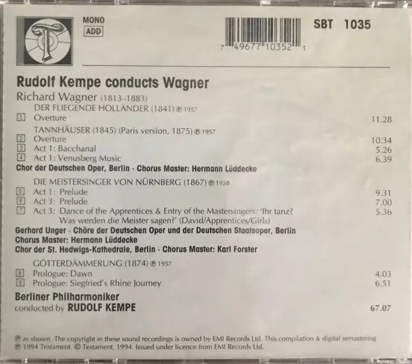 | Cím | Rudolf Kempe Conducts Wagner |