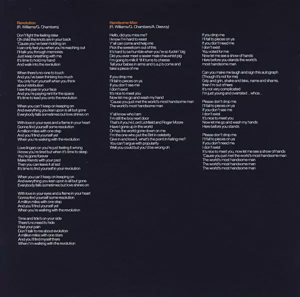 Backing Vocals Gary Nuttall, Paul "Tubbs" Williams, Phil Spalding | Bass Phil Spalding | Brass Dave Bishop, Neil Sidwell, Simon Gardner, Steve Sidwell | Drums Jeremy Stacey | Electric Guitar Gary Nuttall, Neil Taylor | Percussion Luis Jardim | Piano, Organ [Hammond] Andy Wallace | Written-By Guy Chambers, Robbie Williams