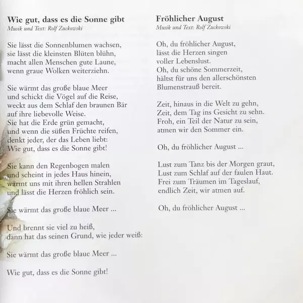 | 8 | Rolf Zuckowski, Die Alsterfrösche: Wie Gut, Dass Es Die Sonne Gibt | 2:52 min | |